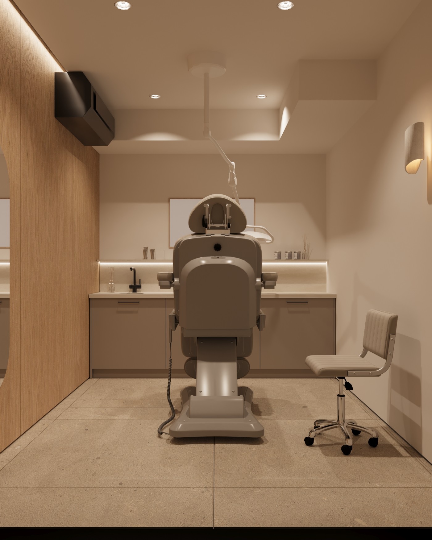 The result is a warm, understated environment where clients can slow down, relax, and feel fully supported.
